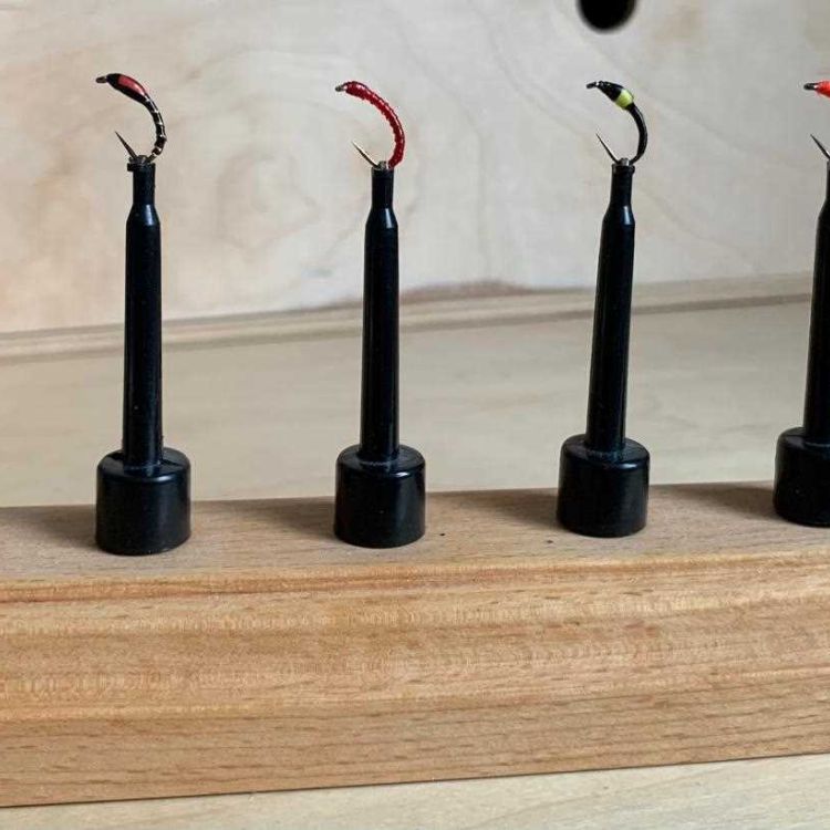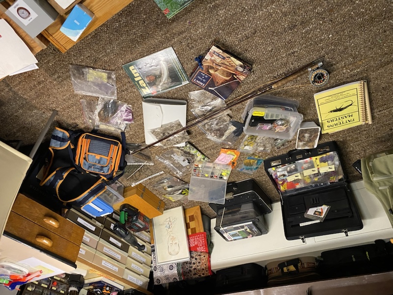 Uit de erfenis van Ruard, aangevuld met spullen uit eigen voorraad ook nog twee sets gemaakt voor vliegbinden (gereedschap en veren) en vliegvissen (hengels met reel), inclusief wat bindboeken. Op dit moment heb ik in wisselende samenstelling 5 kids onder de hoede van 8-14 jaar. Vissen met kunstaas, vliegbinden en leren werpen met een vliegenhengel. Heel leuk, alleen kom je aan zelf vissen niet meer toe, maar dat komt wel weer.